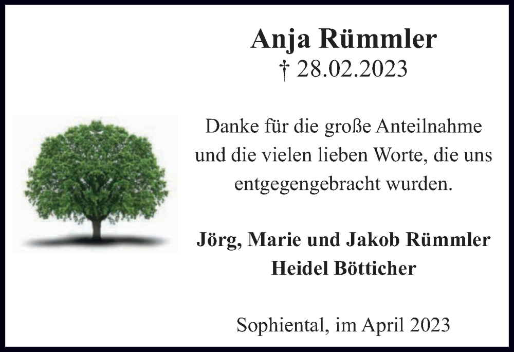 Hier finden Sie alle Traueranzeigen aus der Zeitung, die bisher für Anja Rümmler erschienen sind. Weitere Traueranzeigen, die in der Zeitung erscheinen, werden hier ebenfalls aufgelistet