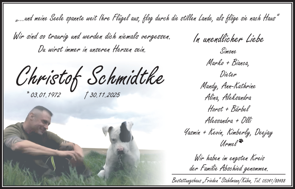 Hier finden Sie alle Traueranzeigen aus der Zeitung, die bisher für Christof Schmidtke erschienen sind. Weitere Traueranzeigen, die in der Zeitung erscheinen, werden hier ebenfalls aufgelistet