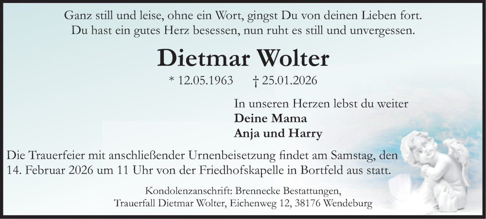 Hier finden Sie alle Traueranzeigen aus der Zeitung, die bisher für Dietmar Wolter erschienen sind. Weitere Traueranzeigen, die in der Zeitung erscheinen, werden hier ebenfalls aufgelistet