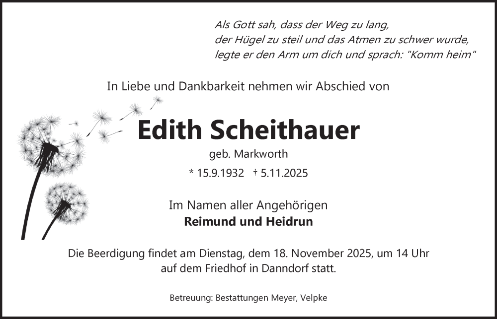 Hier finden Sie alle Traueranzeigen aus der Zeitung, die bisher für Edith Scheithauer erschienen sind. Weitere Traueranzeigen, die in der Zeitung erscheinen, werden hier ebenfalls aufgelistet