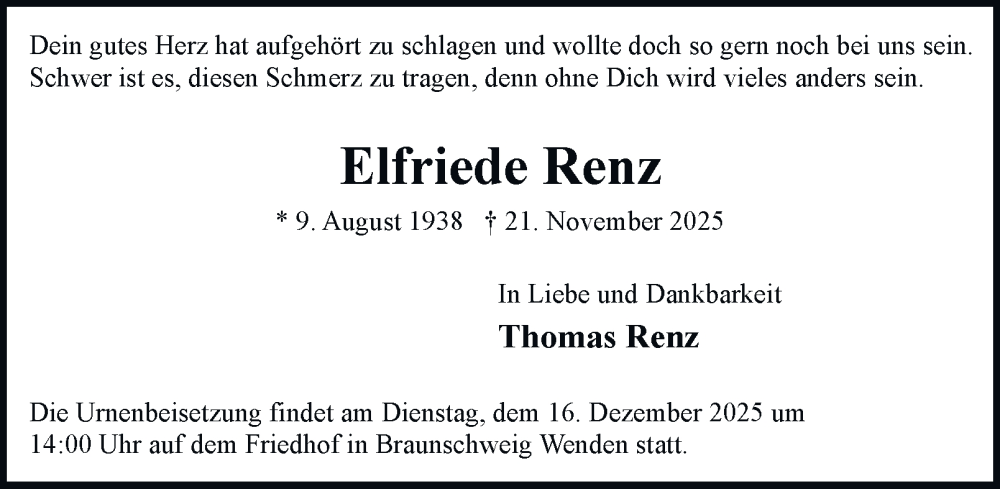 Hier finden Sie alle Traueranzeigen aus der Zeitung, die bisher für Elfriede Renz erschienen sind. Weitere Traueranzeigen, die in der Zeitung erscheinen, werden hier ebenfalls aufgelistet