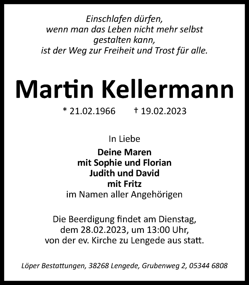 Hier finden Sie alle Traueranzeigen aus der Zeitung, die bisher für Martin Kellermann erschienen sind. Weitere Traueranzeigen, die in der Zeitung erscheinen, werden hier ebenfalls aufgelistet