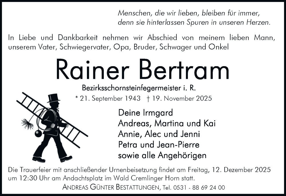 Hier finden Sie alle Traueranzeigen aus der Zeitung, die bisher für Rainer Bertram erschienen sind. Weitere Traueranzeigen, die in der Zeitung erscheinen, werden hier ebenfalls aufgelistet