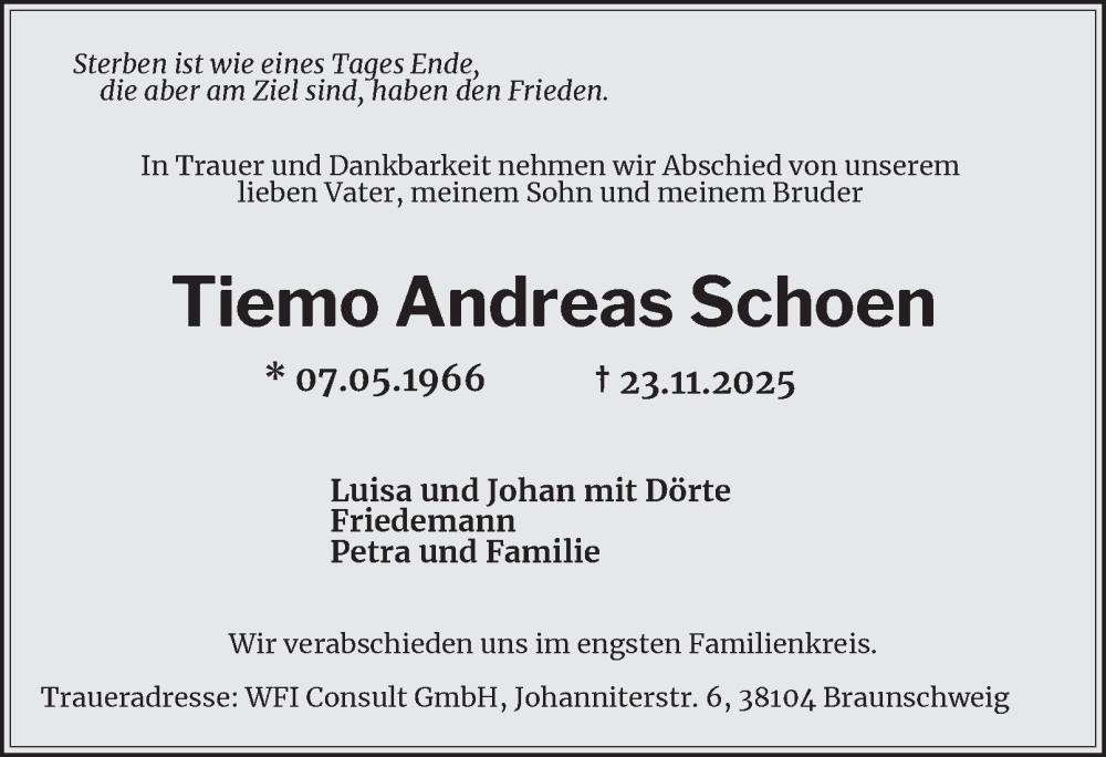 Hier finden Sie alle Traueranzeigen aus der Zeitung, die bisher für Tiemo Andreas Schoen erschienen sind. Weitere Traueranzeigen, die in der Zeitung erscheinen, werden hier ebenfalls aufgelistet